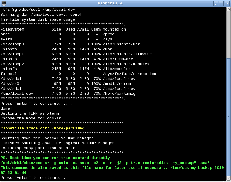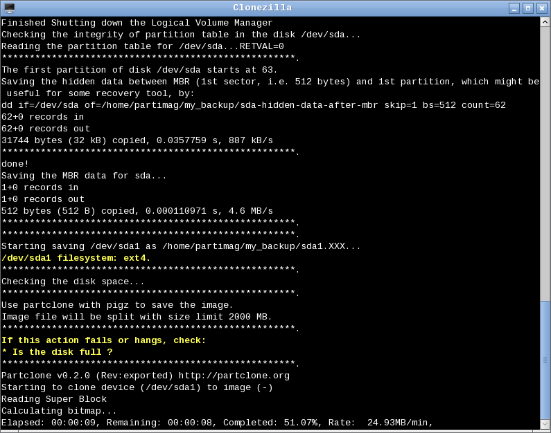 ан нет: проверил только что - бэкапит только занятое пространство Клонзилла. Над было как следует почитать матчасть. Но вопрос не отпадает: нужен софт для бэкапа по расписанию с дозаписью, а не перезаписью резервированных данных с нуля каждый раз.